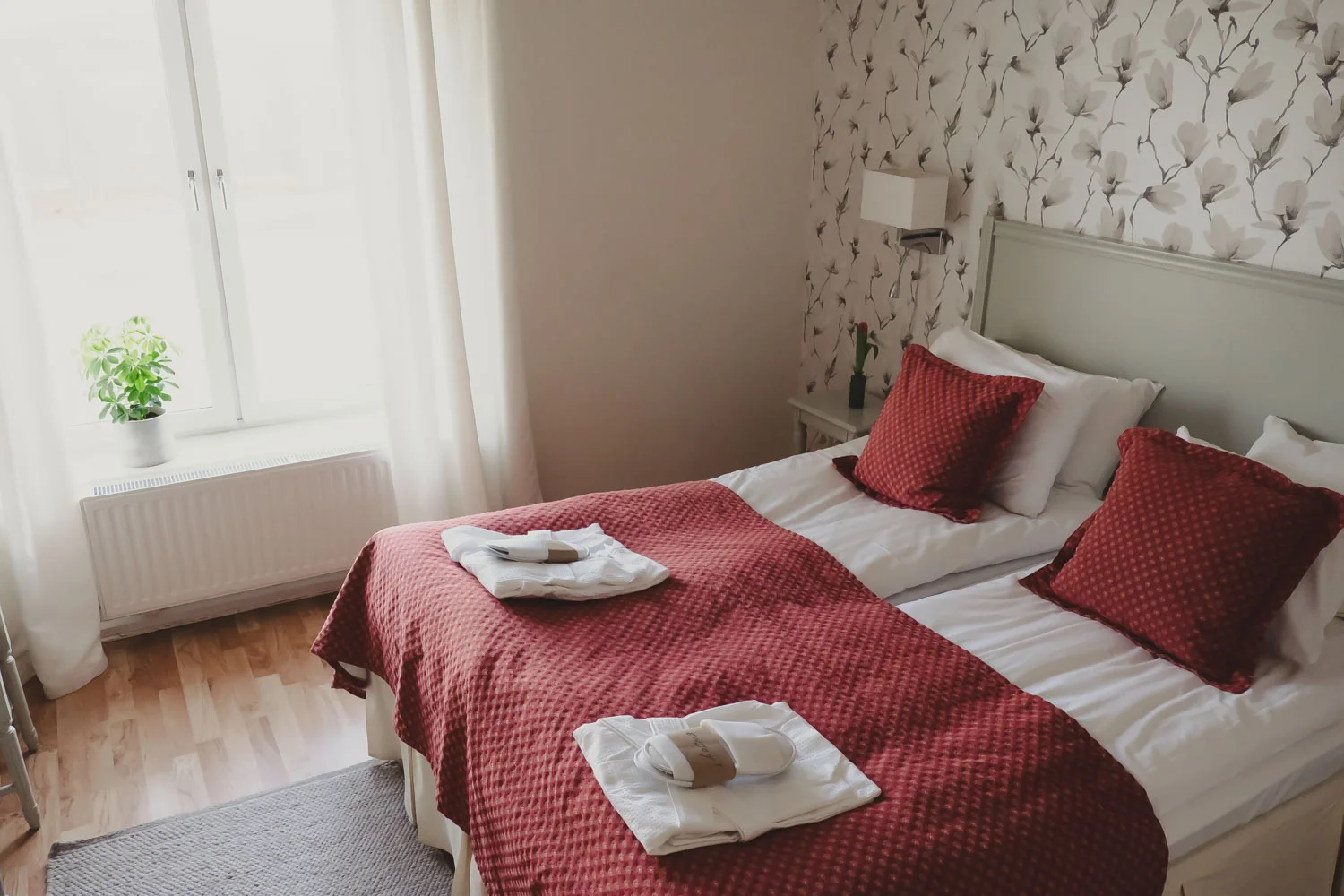 Ett standardrum på Fredensborgs herrgård har en dubbelsäng, dusch, WC, TV, Wifi och de flesta är belägna med utsikt mot sjön, herrgårdsparken eller den vackra smålandsnaturen som omger oss. Rummens storlek är ca 16-17 kvm och kan som mest rymma 3 sängplatser (dubbelsäng + 1 extrasäng) Dubbelsängen är två bredvid varandra ståendes sängar. För familjer bestående av 2 vuxna och 2 barn finns våra familjerum.
